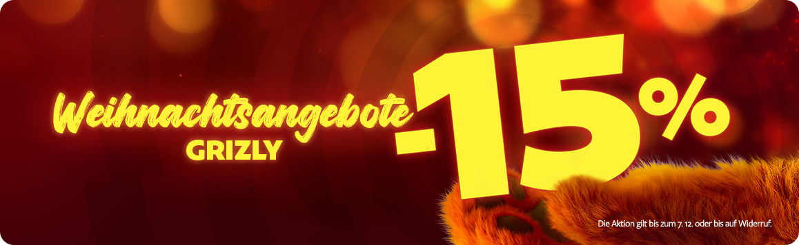 Brum chrum, die leckersten Geschenke für die ganze Familie, exklusive Leckereien für jeden Besuch und hochwertige Zutaten für duftendes Weihnachtsgebäck besorge ich – ich, Grizly. Nutzt jetzt zusätzlich 15 % Rabatt auf fast 500 Köstlichkeiten. Darunter sind auch weihnachtliche Limited Editions, die schnell vergriffen sind. 🧡