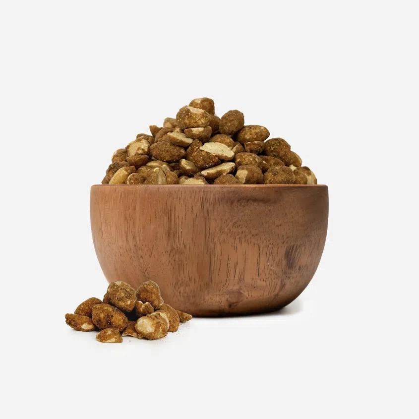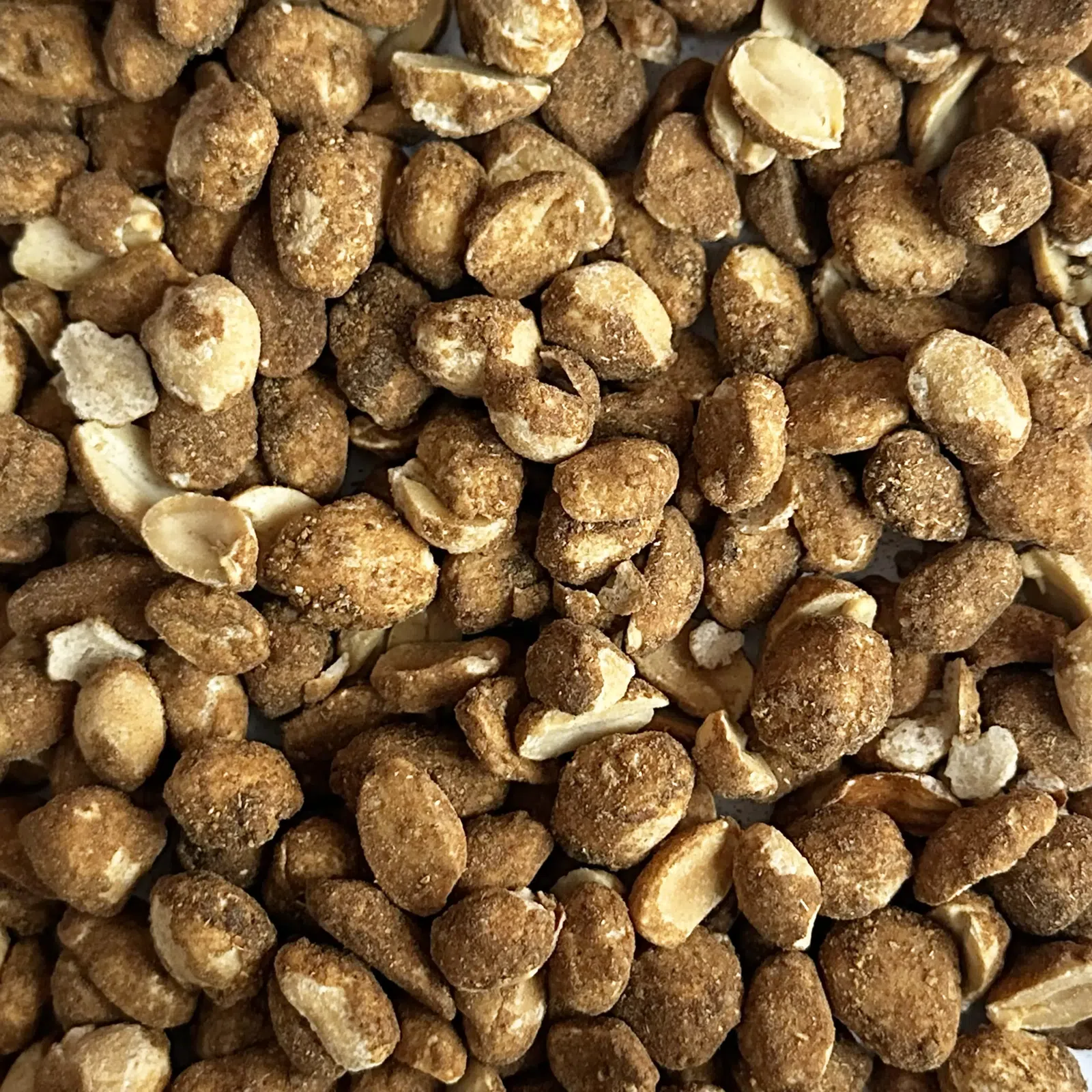 Karamellisierte Erdnüsse mit Gewürzen, die dich schon beim ersten Knacken begeistern. Knusprige Erdnüsse in einer feinen Karamellschicht werden durch eine aromatische Fünf-Gewürze-Mischung und eine Prise Chili ergänzt, die dem Geschmack eine angenehme Schärfe verleihen. Süß, würzig und leicht pikant in perfekt ausgewogener Kombination. Der ideale Snack für den Filmabend, Partys oder einfach zwischendurch aus der Schale.