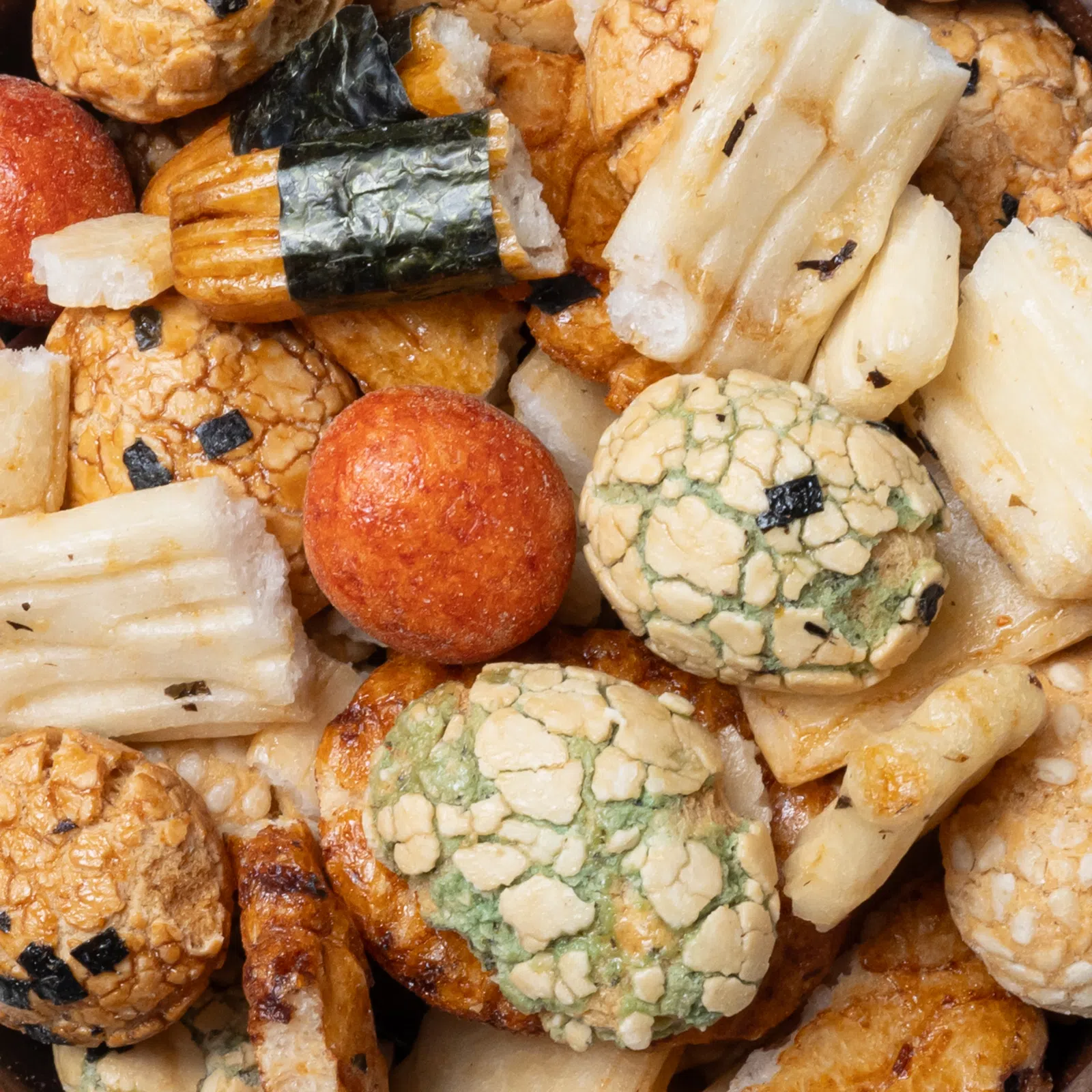 | Zutaten: | Reis 43 %, modifizierte Maisstärke, Erdnüsse 12 %, Weizenmehl, Zucker, Glukosesirup, Sojasauce (Sojabohnen, Wasser, Weizen, Salz, Fruktosesirup), Maltodextrin, Sesamsamen, Backtriebmittel: E503; Salz, Farbstoffe: Karamell, Paprikaextrakt, E141; Meeresalgen 0,17 %, modifizierte Tapiokastärke, Kartoffelstärke, Sojasauce-Pulver (Wasser, Maltodextrin, Sojabohnen, Weizen, Salz), Chili, Hefeextrakt. |