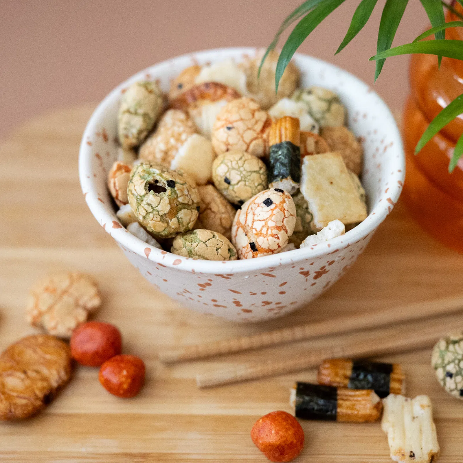 Ein Hauch des Fernen Ostens bei dir zu Hause! Diese exotisch duftende Mischung besteht aus Reiskräckern und umhüllten Erdnüssen. Na, traust du dich, ungewöhnliche Geschmäcker zu probieren?
