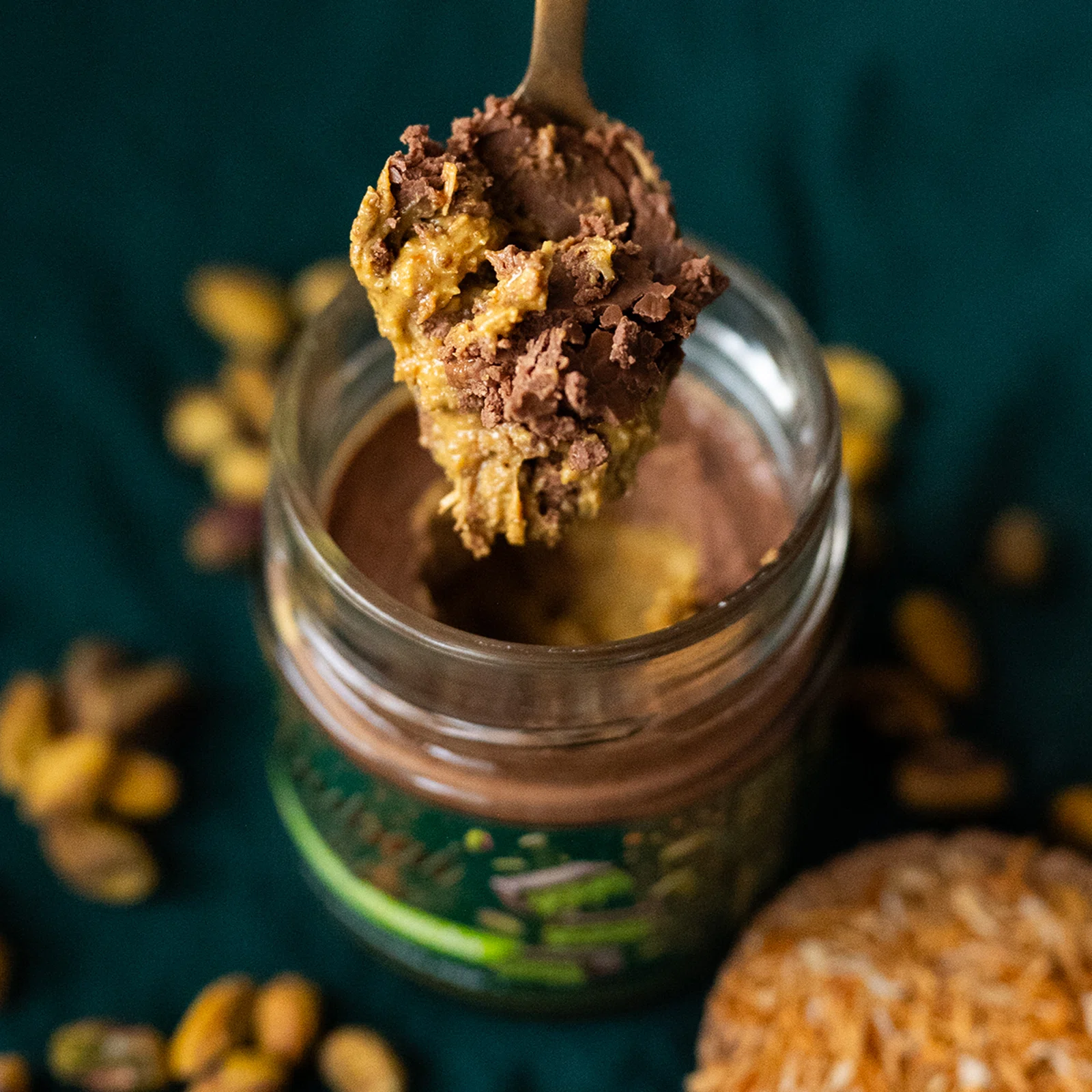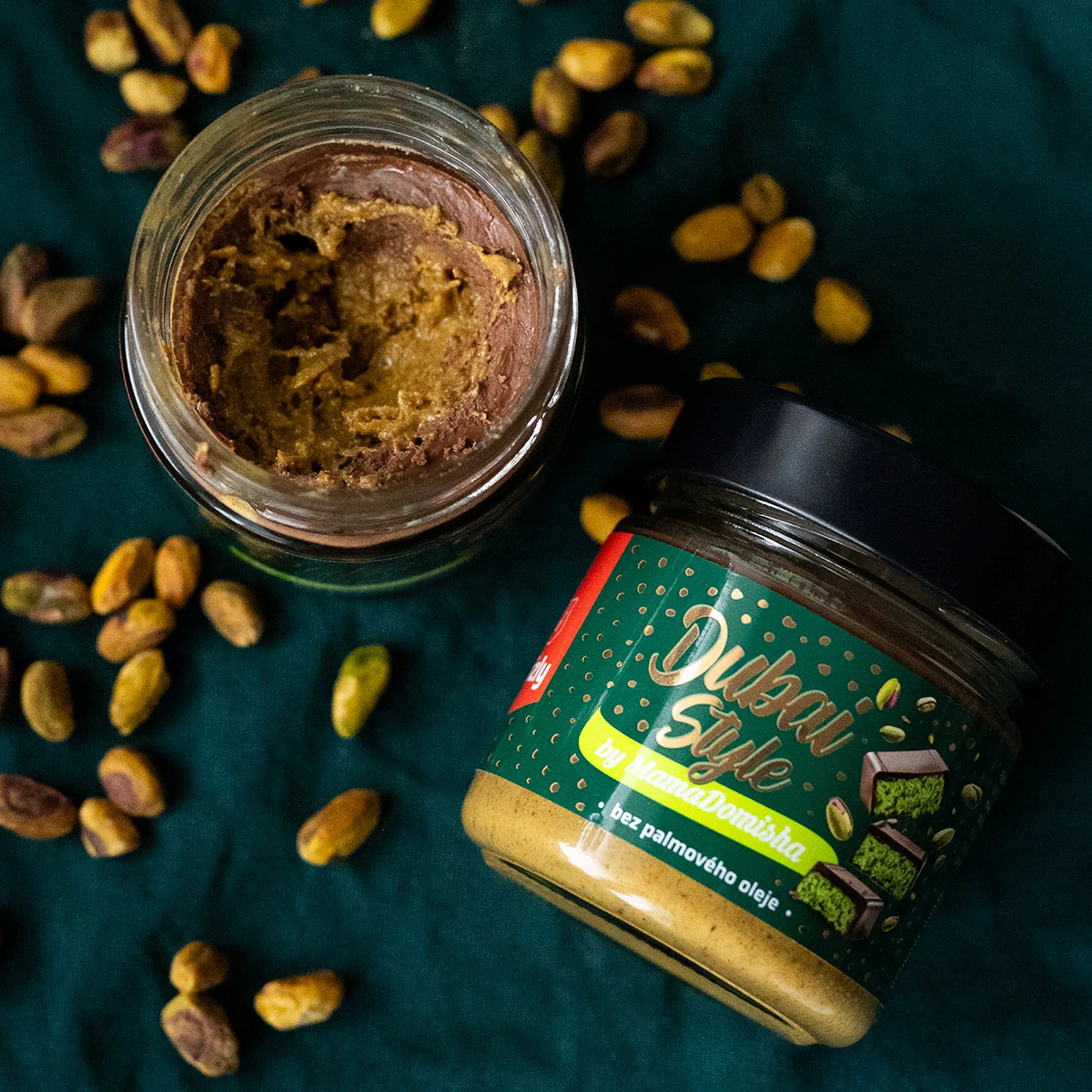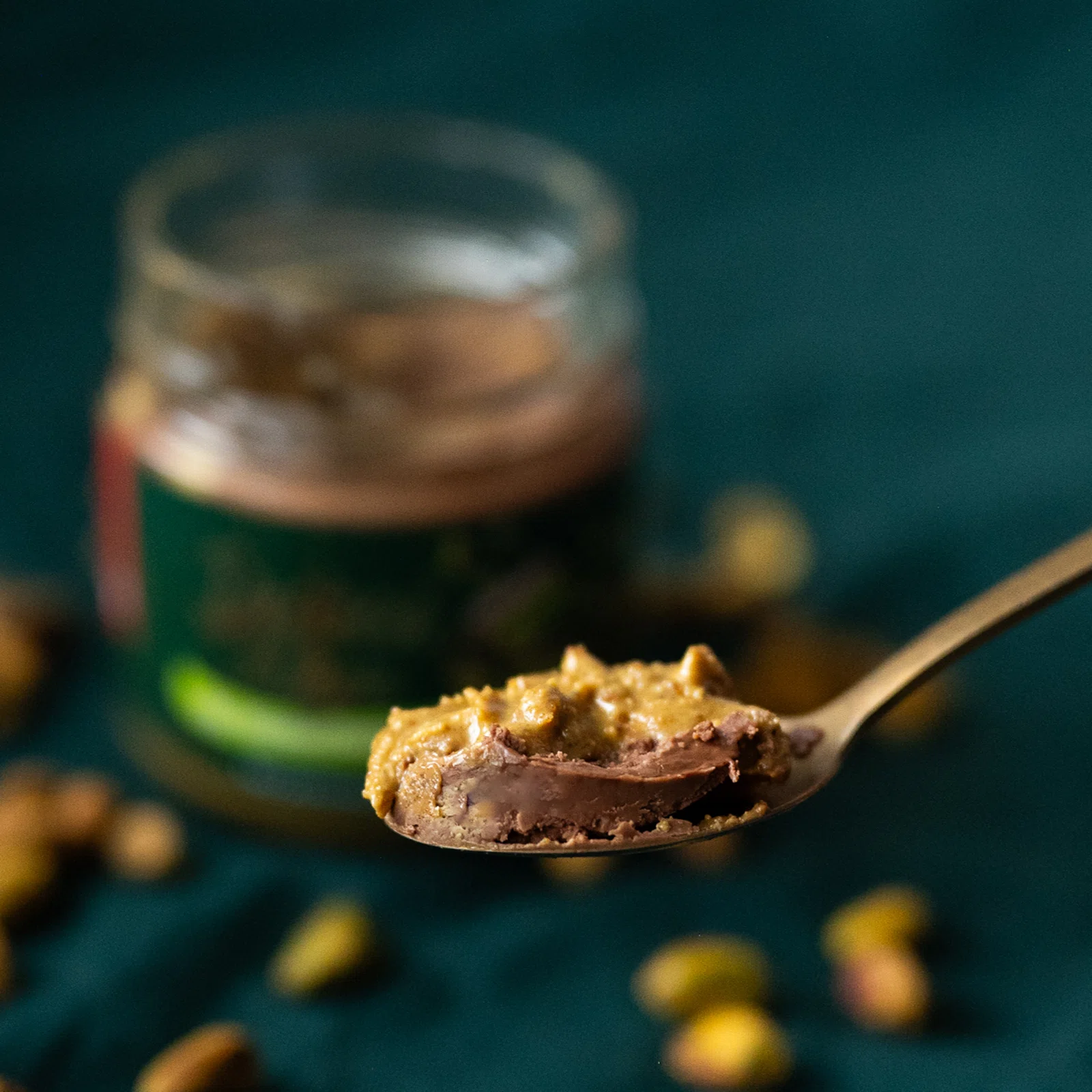 Keine Flugtickets nötig – für diesen Luxus müssen Sie nicht bis nach Dubai! Unsere Dubai-Style Spread Rezeptur ist direkt von traditionellen arabischen Rezepten inspiriert. Hier treffen exklusive Schokolade, 100 % Pistazienmus und knuspriger Kadayif aufeinander – eine Geschmacksexplosion der Extraklasse!