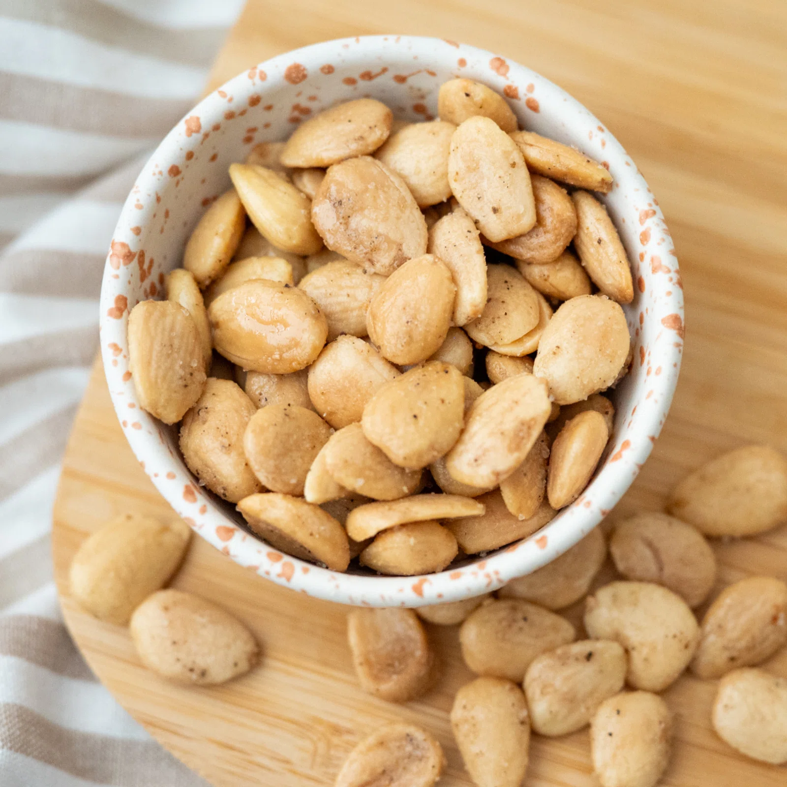 Diese Mandeln sind der wahr gewordene Traum für alle Nussliebhaber. Die außergewöhnlich zubereiteten, frittierten Mandeln haben wir mit edlem Trüffelgewürz verfeinert – so entsteht ein unvergleichlich luxuriöser Genuss.