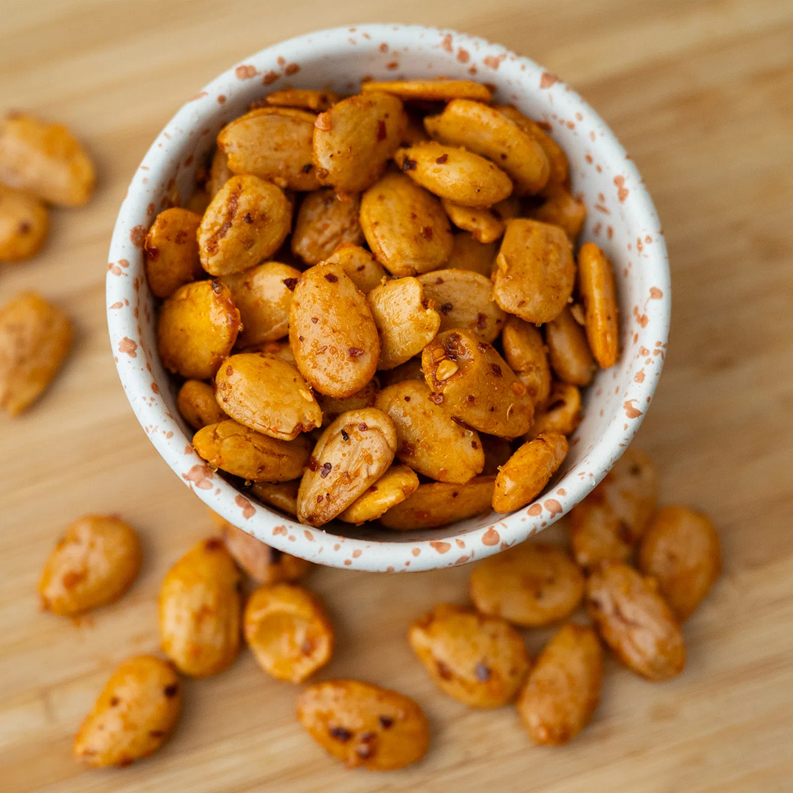 Salzige Snacks mit Paprikageschmack sind super beliebt und landen oft ganz oben auf den Beliebtheitslisten. Klar, dass sie auch in unserem Sortiment an gewürzten, gerösteten Mandeln nicht fehlen dürfen! Du fragst dich, was genau unsere gerösteten Mandeln eigentlich sind? Ganz einfach: ein knuspriger Snack, bei dem das Öl nur als Geschmacksträger dient. Die Mandeln werden kurz in Öl gewendet und anschließend schonend geröstet. Und weil wir nicht gerade bescheiden sind, haben wir gleich mehrere Varianten für dich am Start – von gesalzenen Mandeln über Kräuter- und Trüffelmandeln bis hin zu den unwiderstehlichen Paprikamandeln.