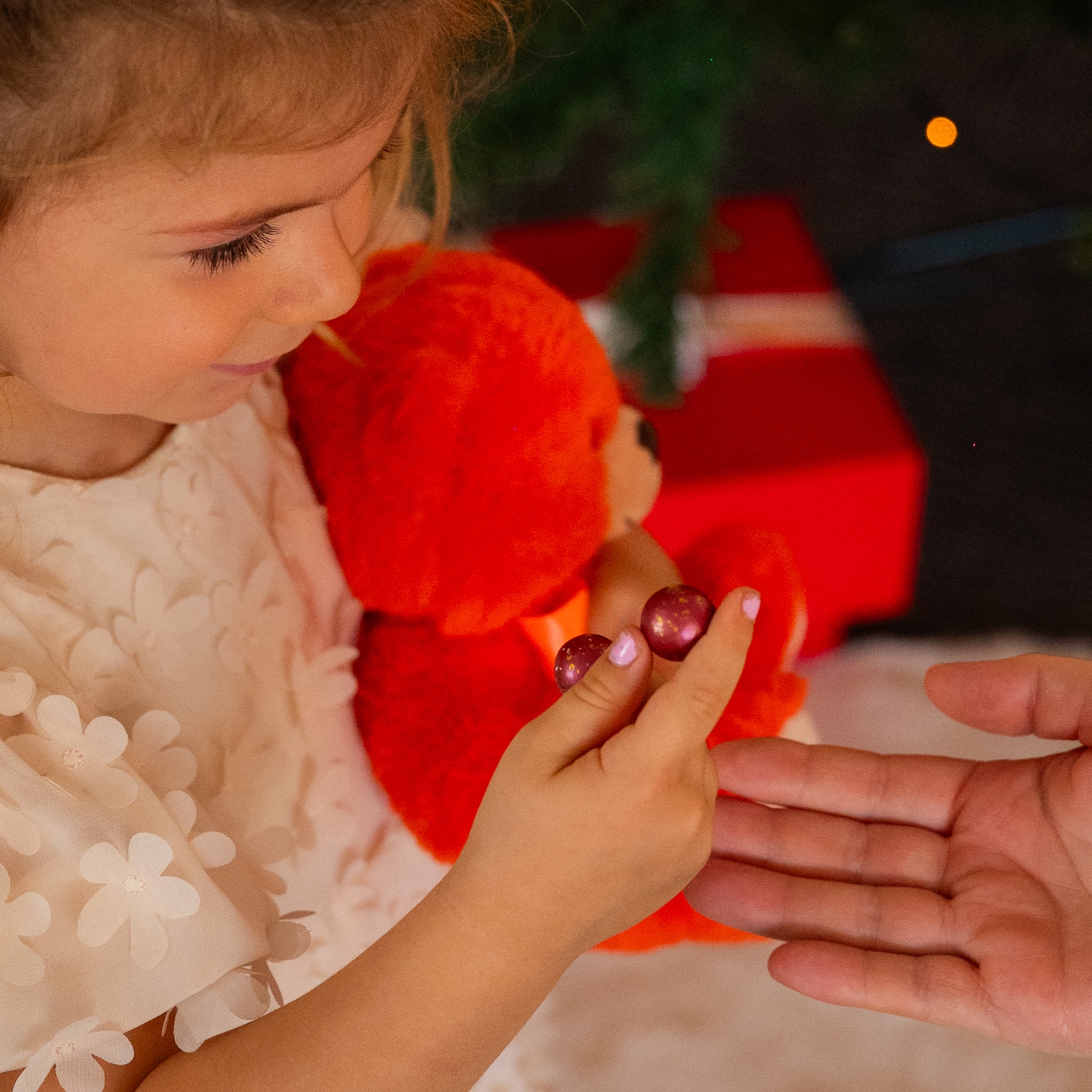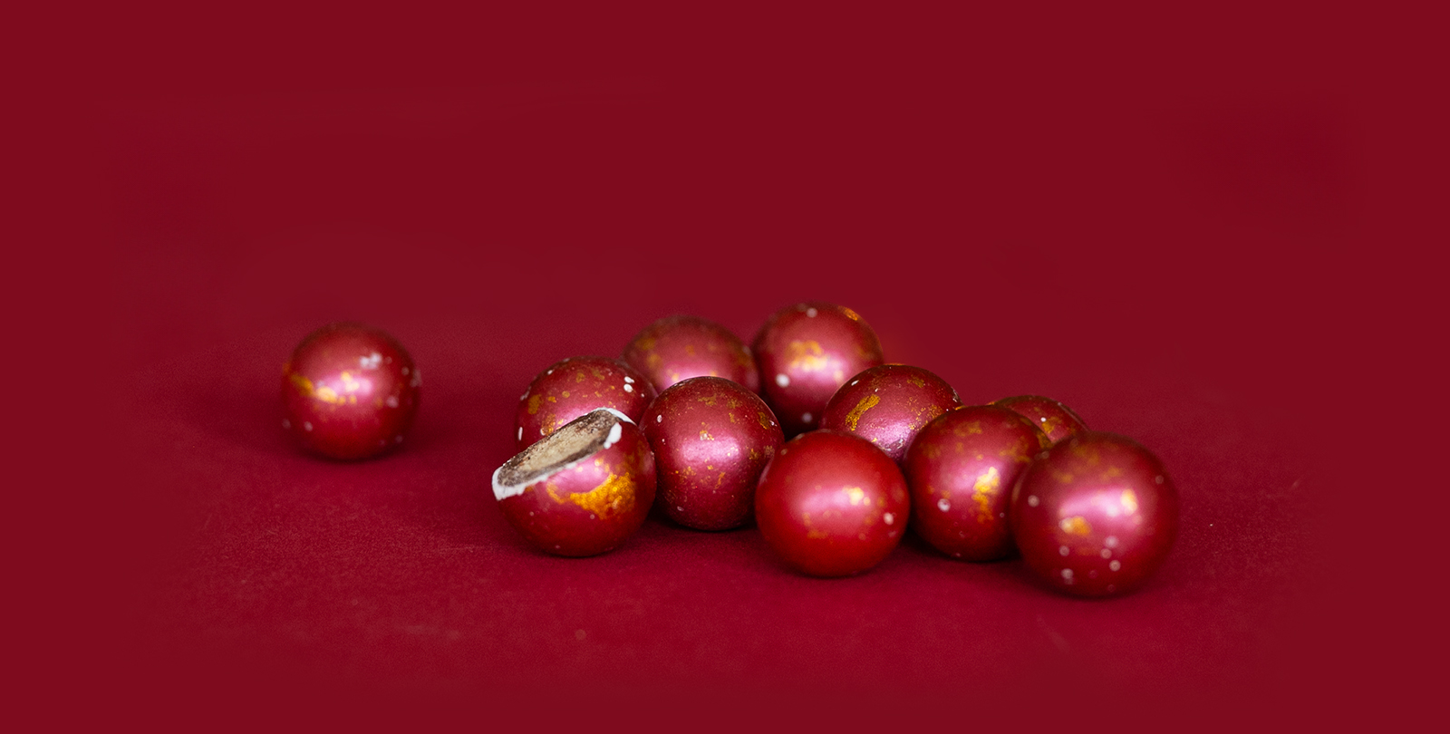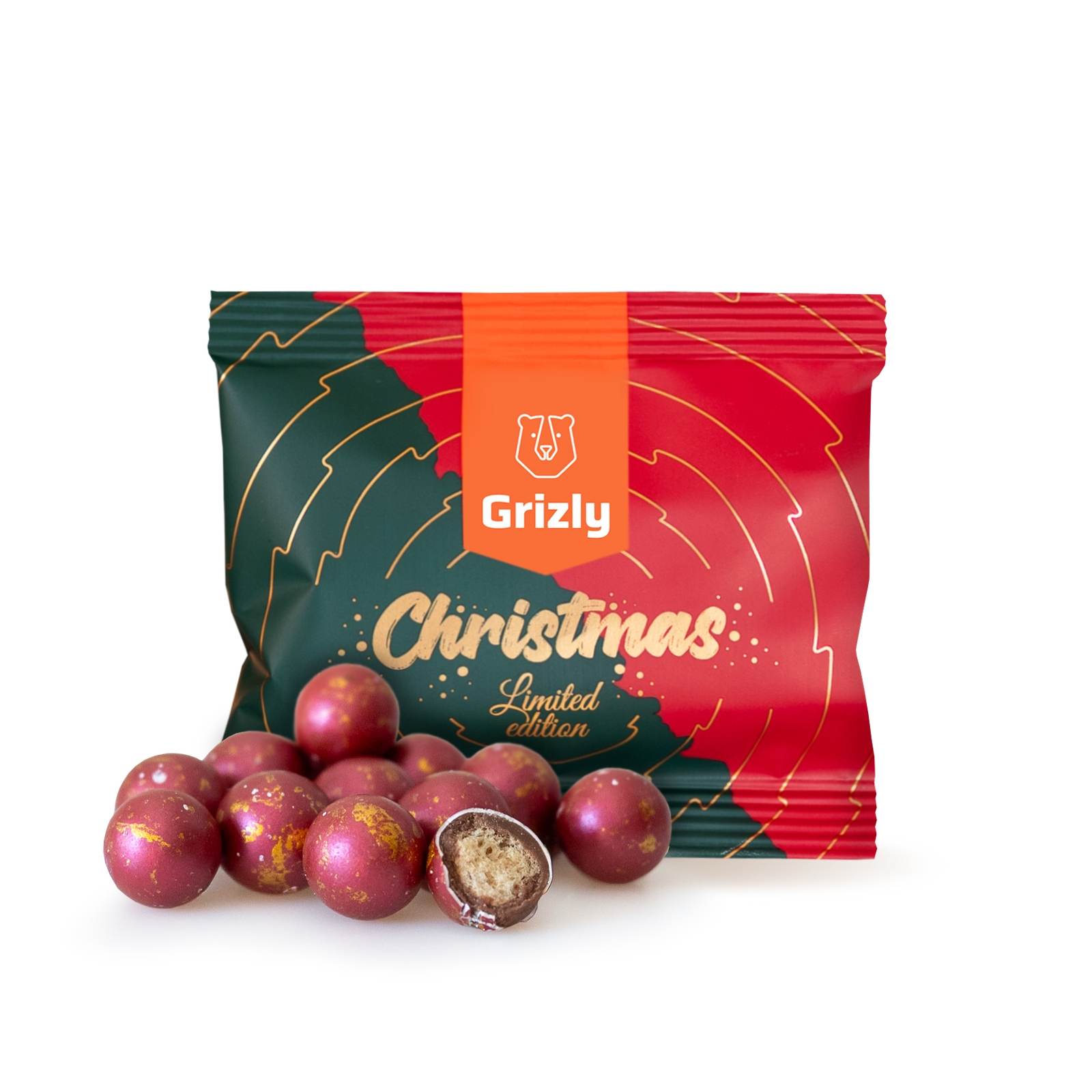 Auf den ersten Blick sehen unsere schönen rot-goldenen glitzernden Weihnachtskugeln wie eine Dekoration aus. Und in gewisser Weise ist das wahr, nur dass dieses schöne glitzernde Ding essbar ist! Wirklich! Und es schmeckt einfach fantastisch – wie Lebkuchen. Tatsächlich handelt es sich um knusprige Getreidekugeln, die mit einer Kakaoglasur und einer zuckerhaltigen glitzernden Kruste überzogen sind. Wenn man noch hinzunimmt, dass wir die Kugeln in eine wunderschöne Weihnachtsverpackung gesteckt haben, bekommt man ein richtig weihnachtliches essbares Geschenk. Die Kugeln sehen auch wunderschön als Dekoration auf dem Weihnachtstisch aus, die man nach dem Festessen als wörtlichen goldenen Abschluss genießen kann.