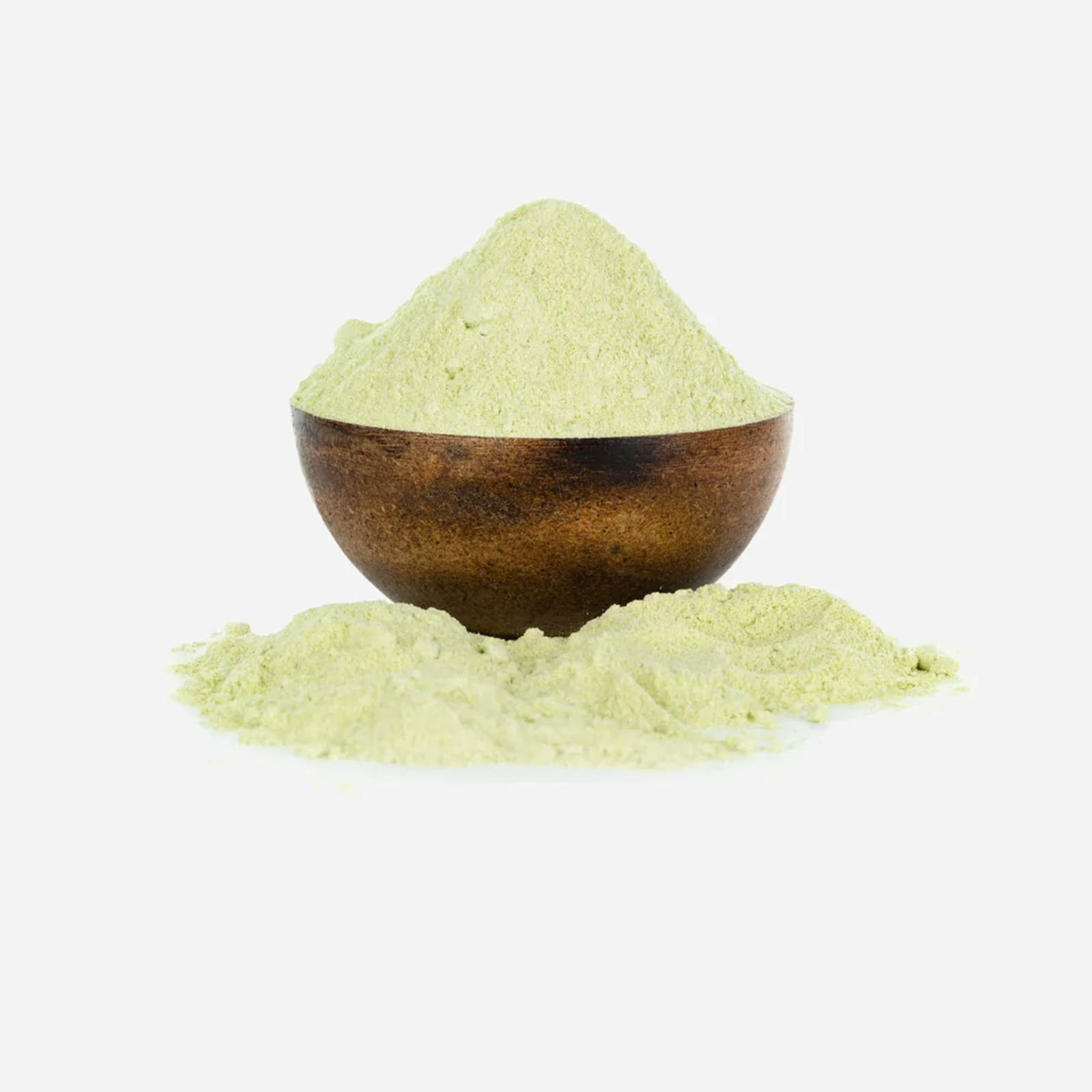 GRIZLY Erbsenmehl wird durch Mahlen von getrockneten Erbsen hergestellt. Das Mehl behält das Aroma, den Geschmack und insbesondere die schöne grüne Farbe bei.