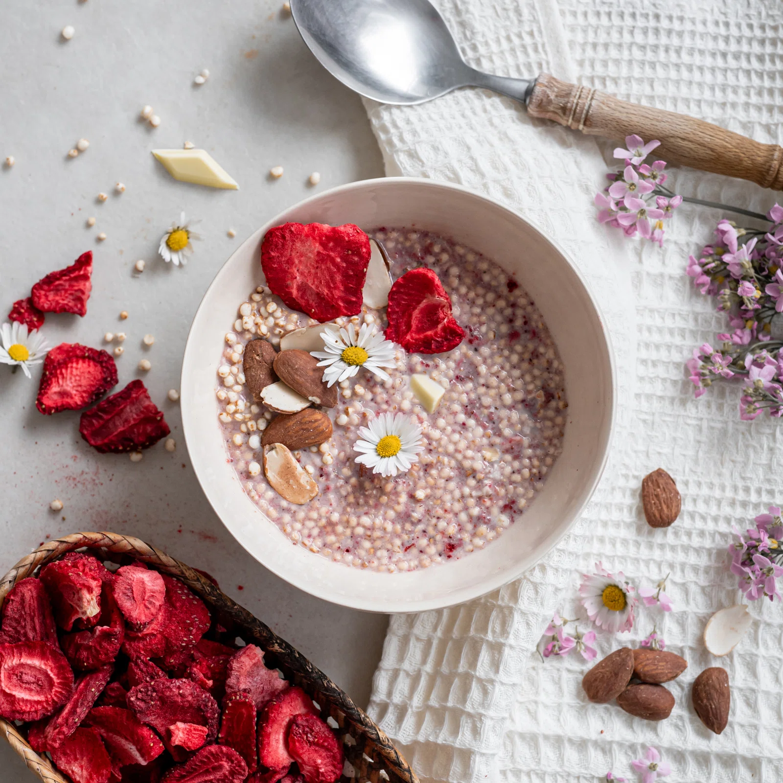 Wenn auch du wie wir zum Team „Frühstück gibt’s nur als Brei” gehörst, solltest du unbedingt auch andere Geschmacksrichtungen aus unserer Frühstücksreihe probieren – vielleicht gefällt dir auch Haferbrei mit Blaubeeren und Himbeeren oder Haferbrei mit Karamell und weißer Maulbeere.