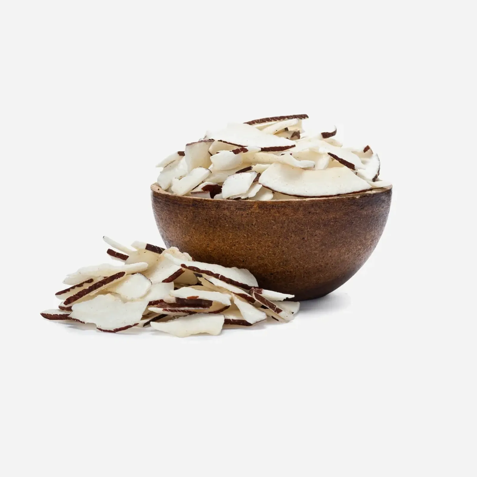 - Zusammensetzung: Kokos-Chips mit braunem Rand 100%.