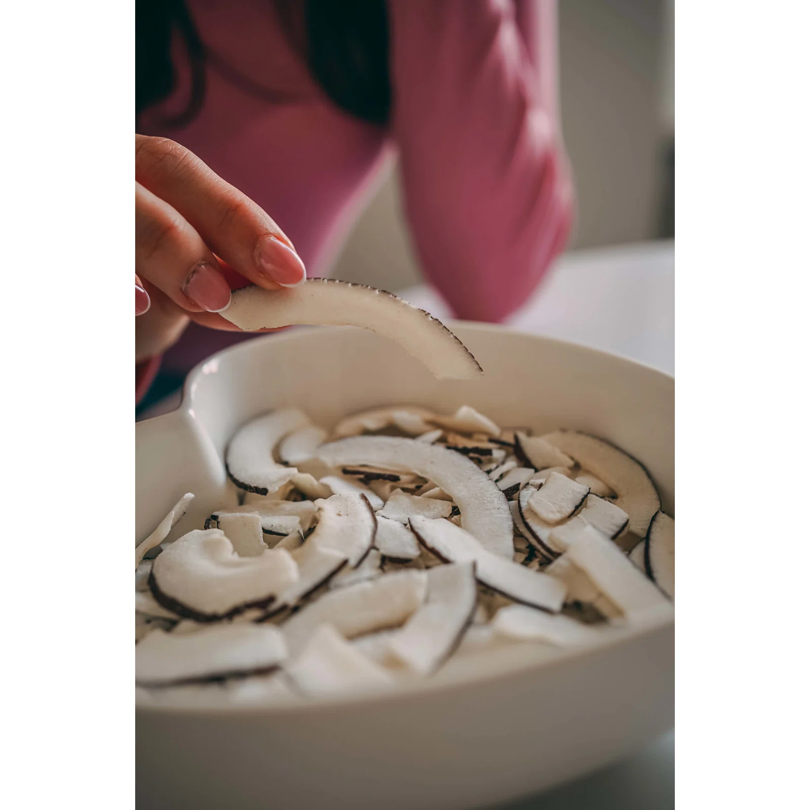 - Zusammensetzung: Kokosscheiben mit braunem Rand 100%.