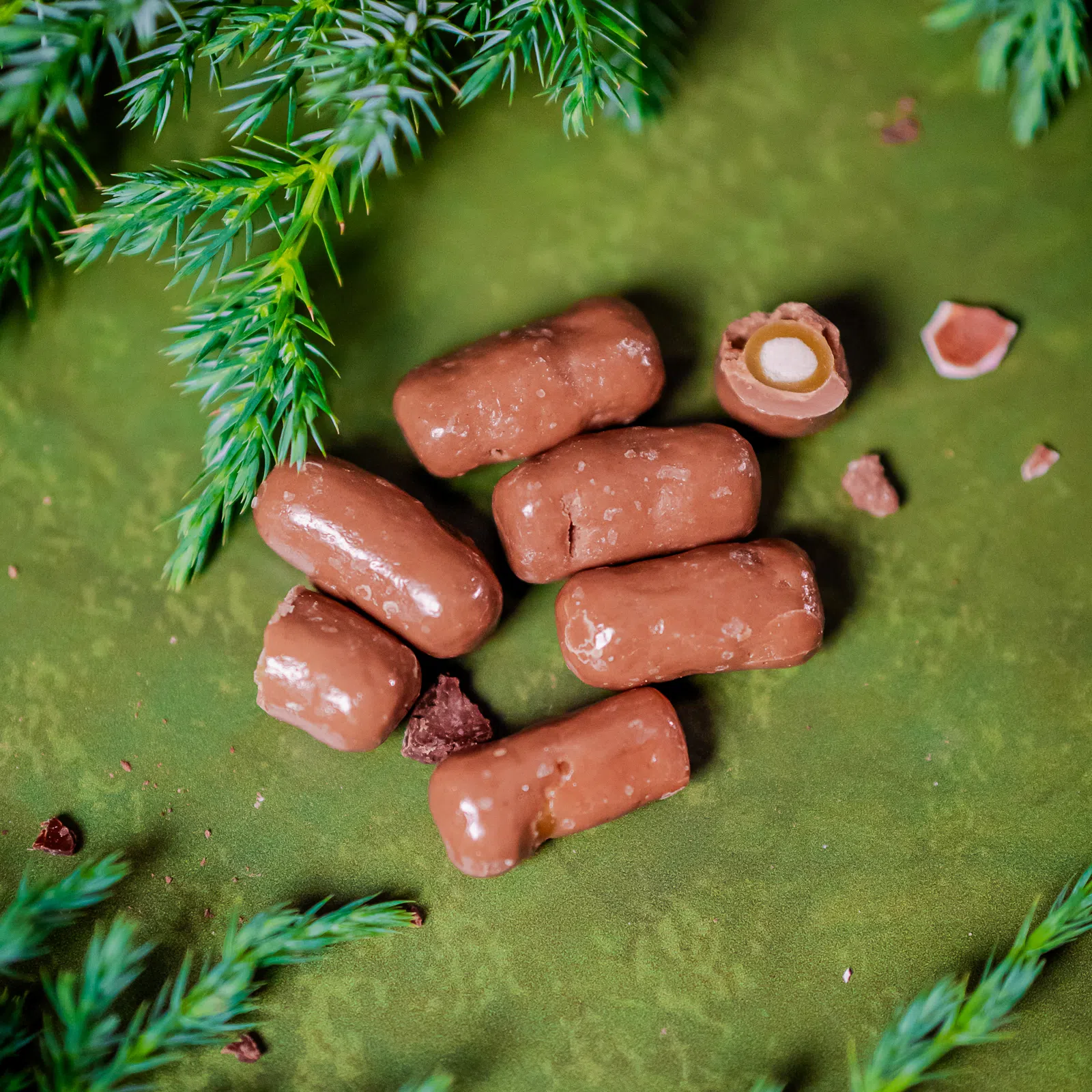 Weihnachtsschlemmen in voller Pracht. Unsere Pfirsich-Lakritzstangen im Mantel aus Milchschokolade müssen Sie probieren – nur so checken Sie, wie unfassbar gut die wirklich sind.