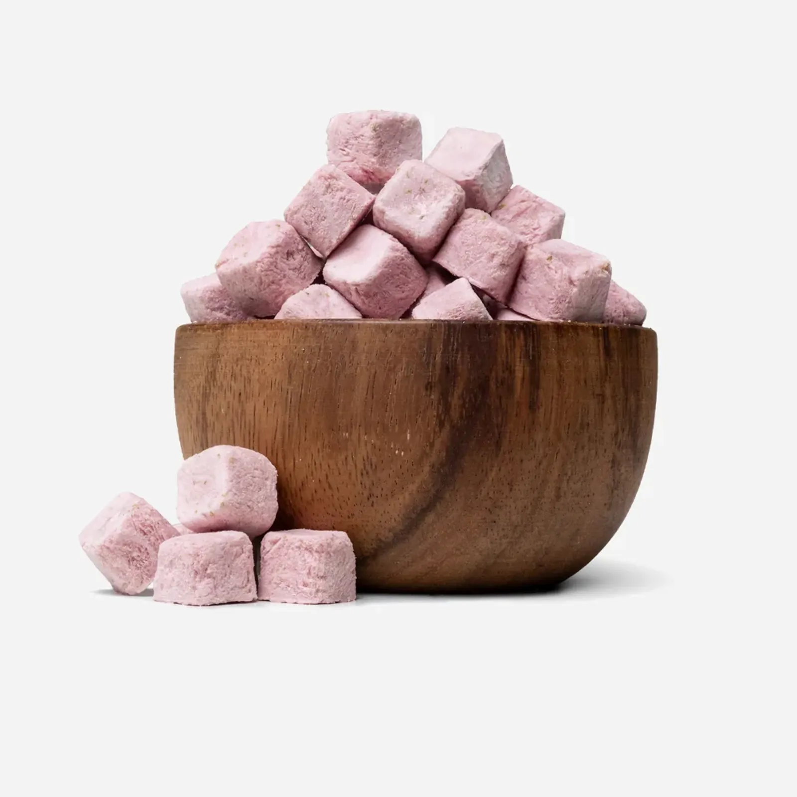 Nur zwei Zutaten – und so viel Genuss! Für die Herstellung dieser geschmacklich und nährstoffreich ausgeglichenen Würfel wird nur gefriergetrocknete Kokosmilch und Erdbeerpulver verwendet. Keine weiteren Zusatzstoffe nötig. Vielleicht erinnerst du dich: Gewöhnlich wird Kokosmilch mit Konservierungsstoffen versetzt, damit sie länger haltbar ist – aber nicht hier! Dank der Gefriertrocknung verliert die Milch schnell ihr Wasser, wodurch nichts weiter zugesetzt werden muss.