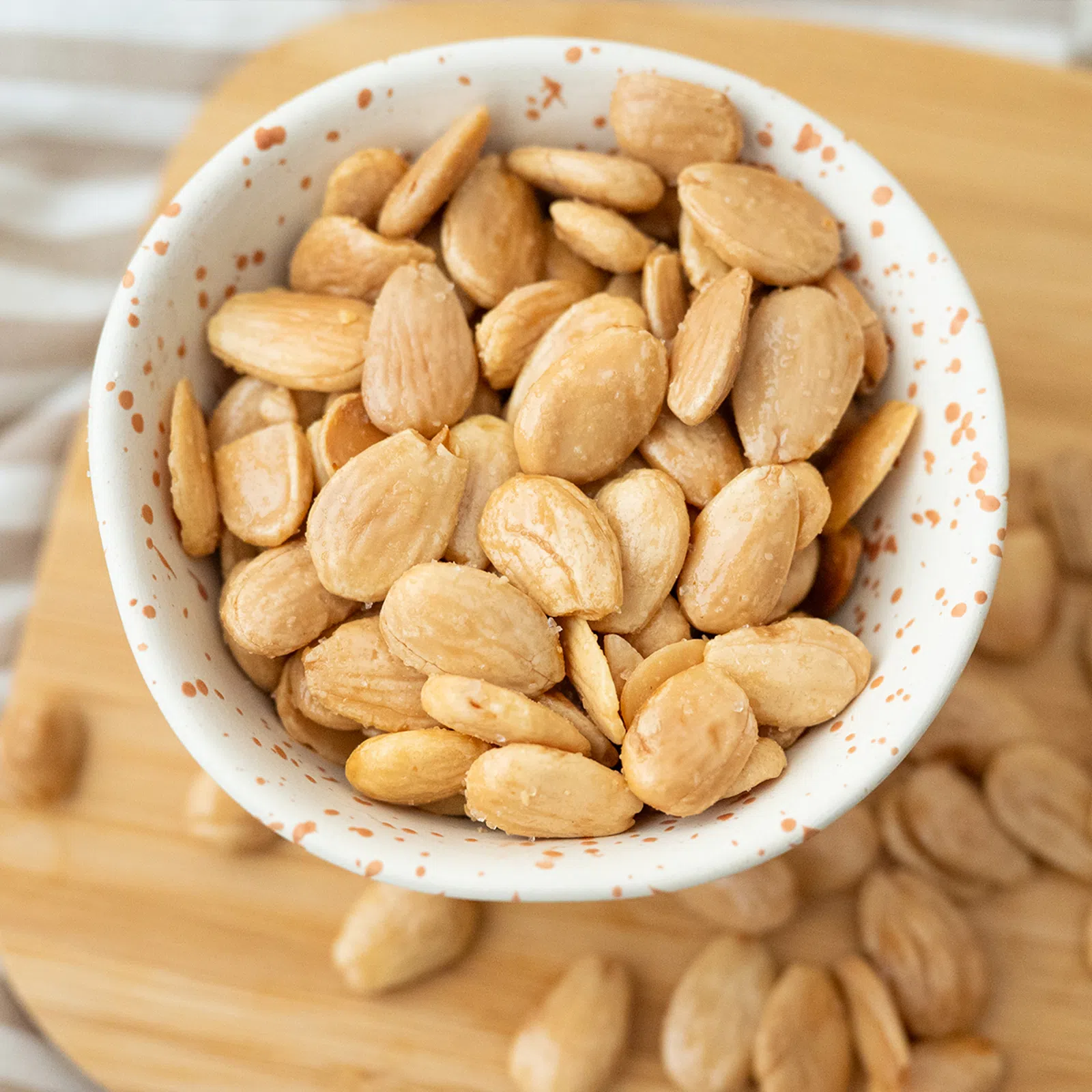 Wenn du Salzchips magst, wirst du auch unsere gebratenen gesalzenen Mandeln lieben. Knusprige, stark süchtig machtende Leckerei, die sich in einen großartigen Begleiter für den abendlichen Entspannen auf der Couch verwandeln kann.