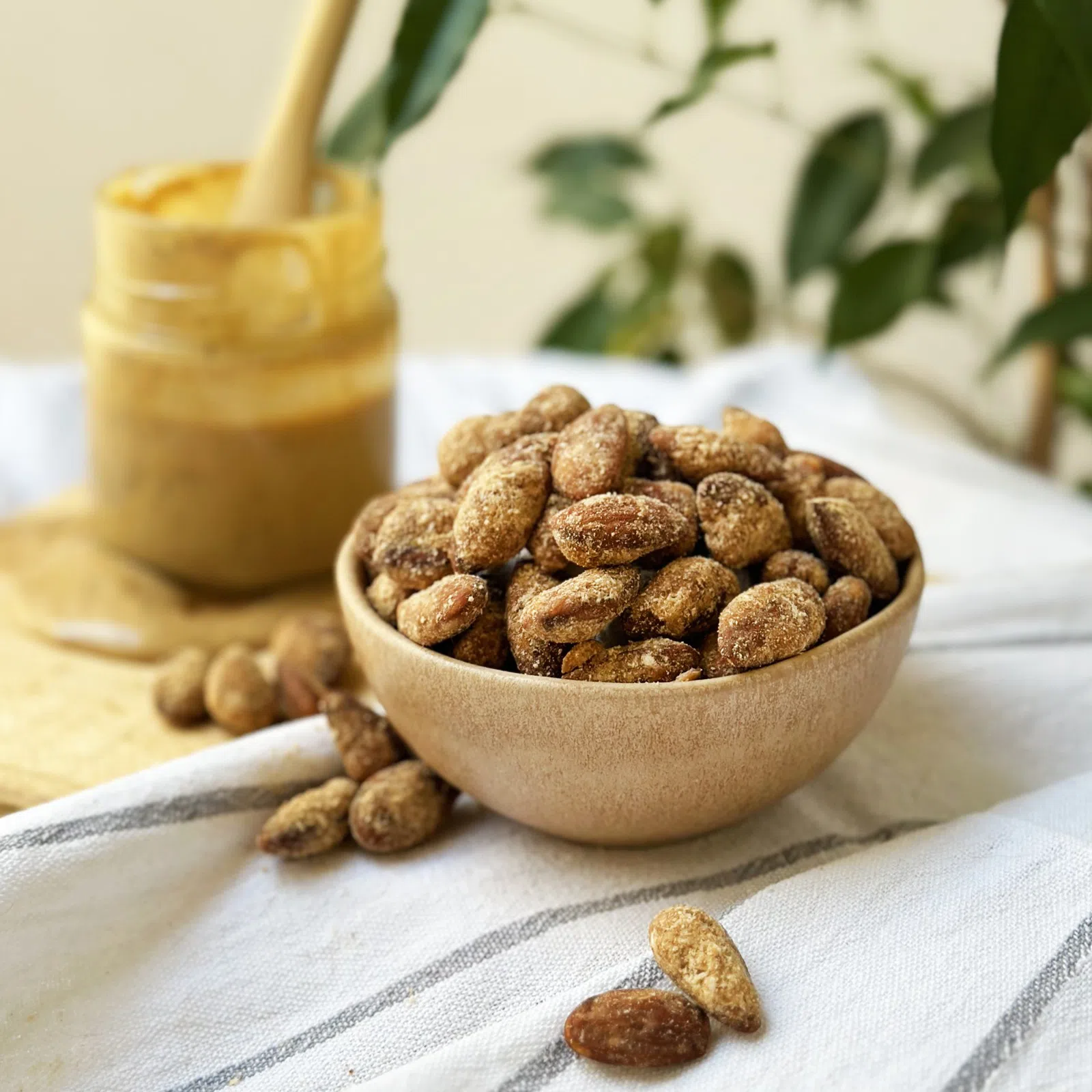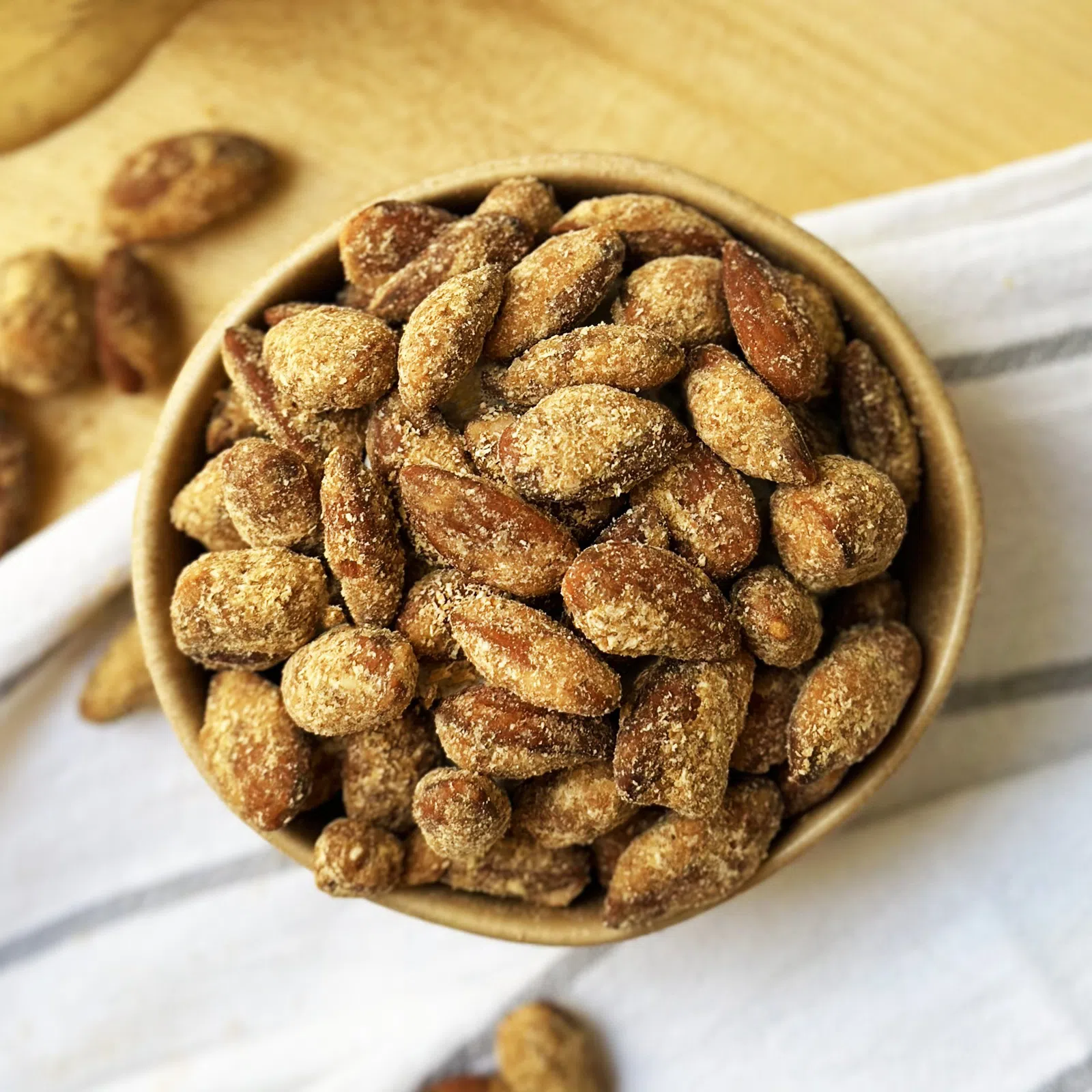 Die Verbindung von knusprigen Mandeln, süßem Karamell und unwiderstehlicher Erdnusscreme kann nie schiefgehen. Ganz im Gegenteil! Sobald Sie einmal die Tüte öffnen, werden Sie immer weiter naschen wollen... Bis Ihre Hand in der leeren Tüte landet. Für Sie getestet. Karamellmandeln mit Erdnussbutter genießen Sie am besten einfach so, sie schmecken gut bei Ihrem Lieblingsbuch, einem fesselnden Film oder einer spannenden Sportübertragung. Sie machen keinen Fehler, wenn Sie sich entscheiden, diese süßen Mandeln in Ihr Frühstücksbrei zu streuen, ergänzt mit nichts anderem als unserer Erdnussbutter.
