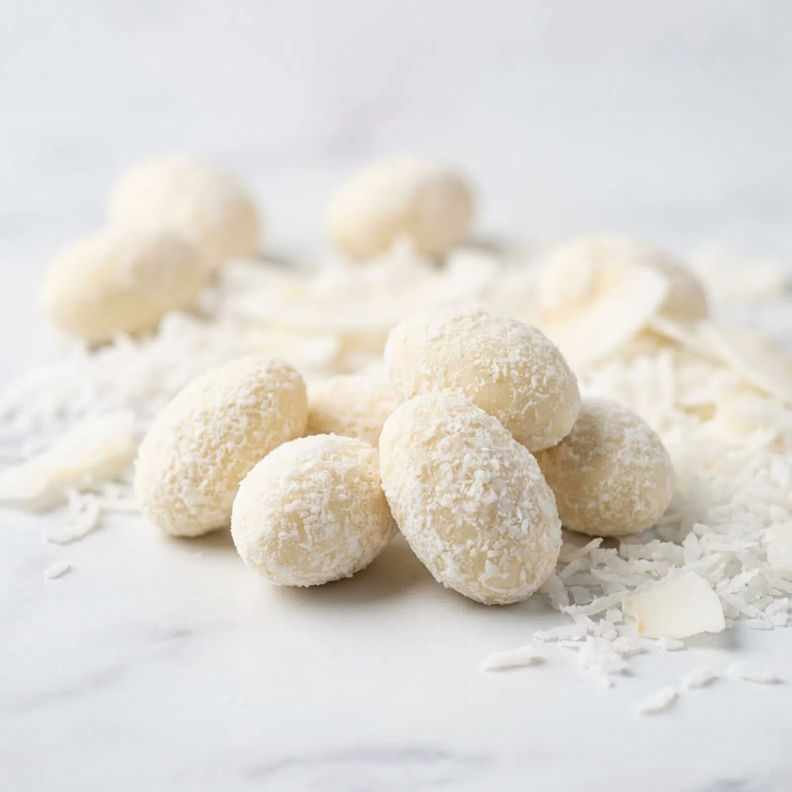 Sorgfältig ausgewählte Mandeln in erstklassiger weißer Schokolade und knusprigem Kokos. Jeder Bissen bringt eine perfekt ausgewogene Kombination aus intensivem Geschmack und feiner Süße.