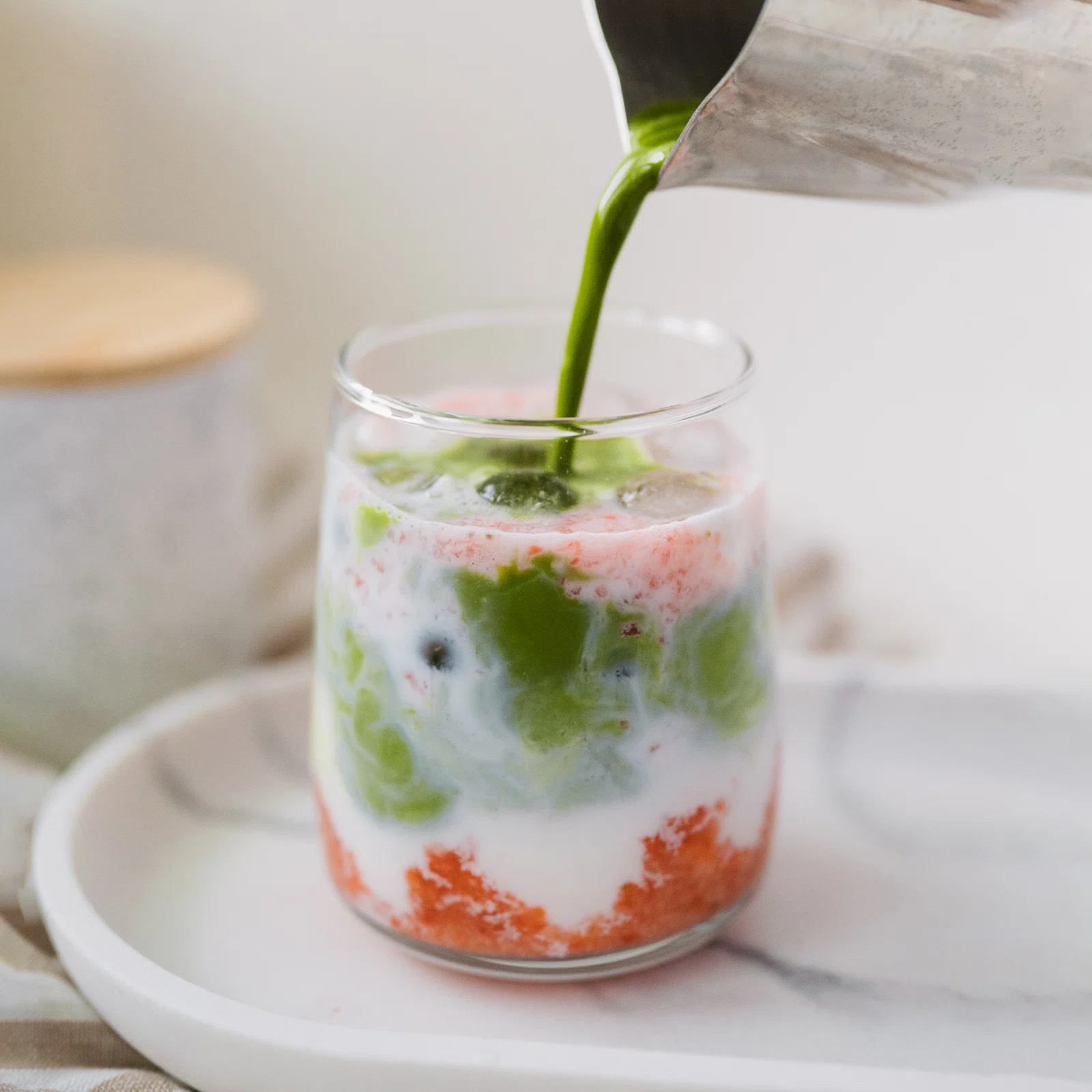 Beliebt ist auch die Zubereitung von Matcha Latte – mit warmer oder kalter Milch. Matcha kann auch zu Smoothies, Cocktails hinzugefügt oder als Zutat für Desserts, Eis oder Pfannkuchen verwendet werden.