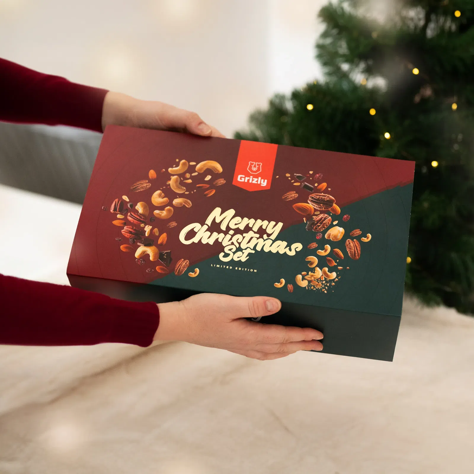 Wenn Sie nicht wissen, womit Sie Ihre Liebsten zu Weihnachten beschenken sollen, überraschen Sie sie mit unserem festlichen Geschenkset. Es besteht aus einer weihnachtlichen Nusscreme, einer Weihnachtsgranola und einer perfekt abgestimmten Mischung aus Nüssen und Trockenfrüchten. Damit machen Sie garantiert Eindruck – glauben Sie uns!