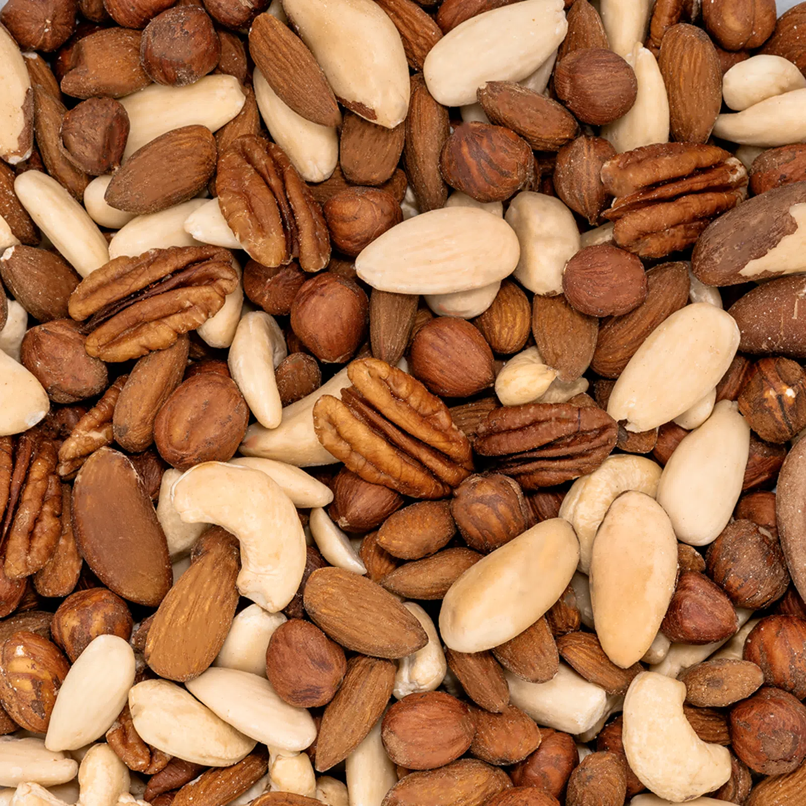 Überlegen Sie, auf welche Nüsse Sie am meisten Bock haben? Gönnen Sie sich einfach alle auf einmal! Eine Mischung aus geschälten und ungeschälten Mandeln, Cashews, Pekannüssen, Paranüssen und Haselnüssen ist eine unschlagbare Kombi.