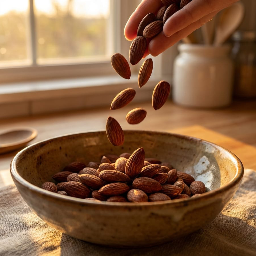 Mandeln aus den USA behalten auch in der geräucherten Variante ihre typische leichte Süße, die durch Salz und Rauch perfekt unterstrichen wird.