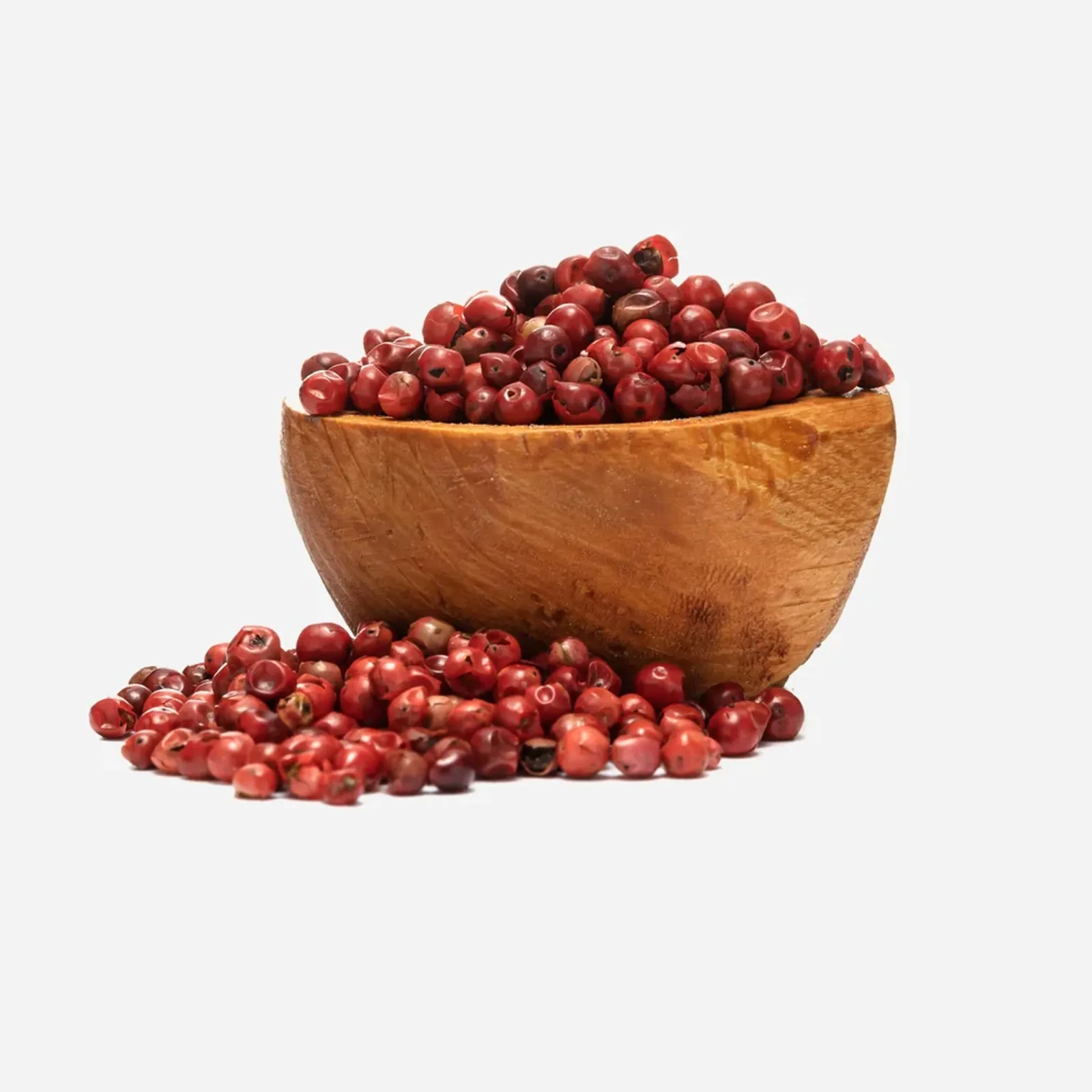 Eigenschaften und Vorteile: Pfefferkörner sind die Früchte des gewöhnlichen Pfeffers, der ursprünglich aus den tropischen Regionen Indiens stammt. Die zarte rote Schale hat einen süßlichen Geschmack und ein ausgeprägtes Aroma. Im Gegensatz zu klassischem schwarzen Pfeffer, der je nach Reifegrad auch grün oder weiß sein kann, wird roter Pfeffer in voller Reife geerntet.