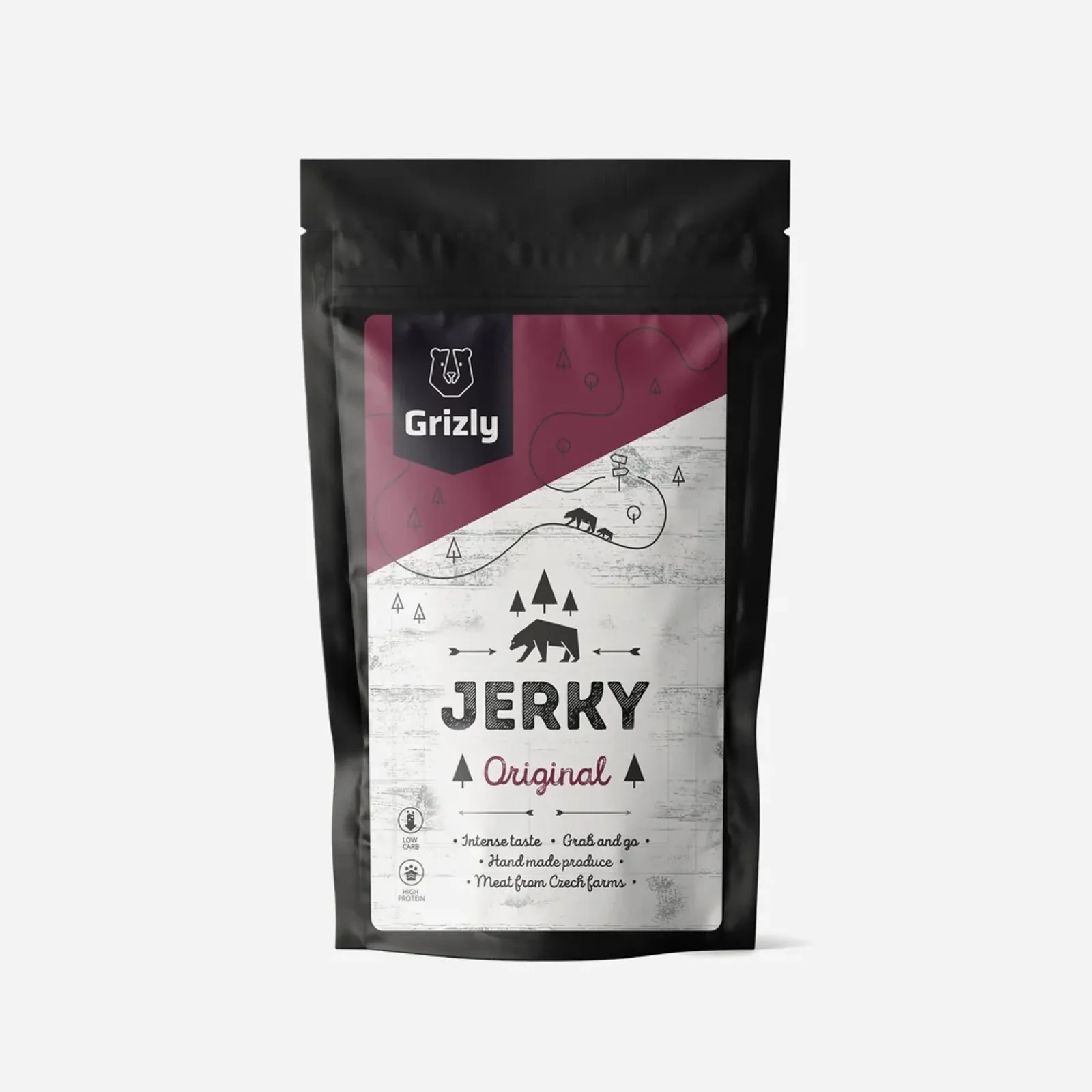Trockenfleisch original GRIZLY ist voller intensiven Geschmacks, ohne Farbstoffe, Konservierungsstoffe und ohne Chemie. Jerky wird mit der Dry Meat Methode getrocknet.