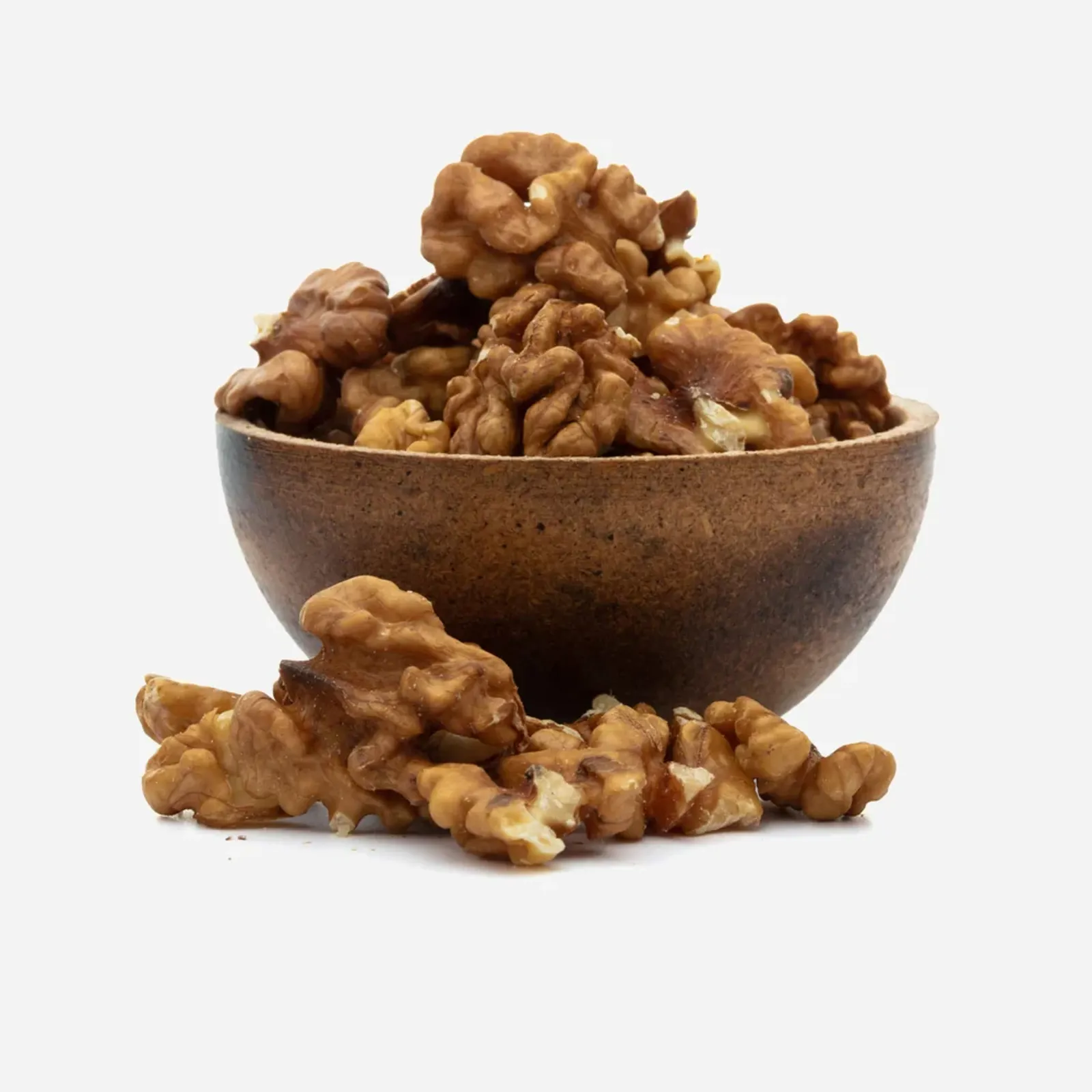Die Walnüsse sind bereits geschält und somit jederzeit griffbereit für einen schnellen Snack. 60 % des Inhalts bestehen aus ganzen Hälften, die sich perfekt zum Dekorieren von selbstgemachten Desserts oder für hausgemachtes Granola eignen. Kleinere Stücke können über das Frühstücksmüsli gestreut oder als Topping für Gemüse- oder Obstsalate verwendet werden. Wenn Sie gerne backen, sind gemahlene Walnüsse eine hervorragende Zutat für süße Teige oder als Füllung für Kuchen, Rollen oder Strudel. Und wenn Sie beim Backen Zeit sparen möchten, bieten wir auch fein gemahlenes Walnussmehl an.
