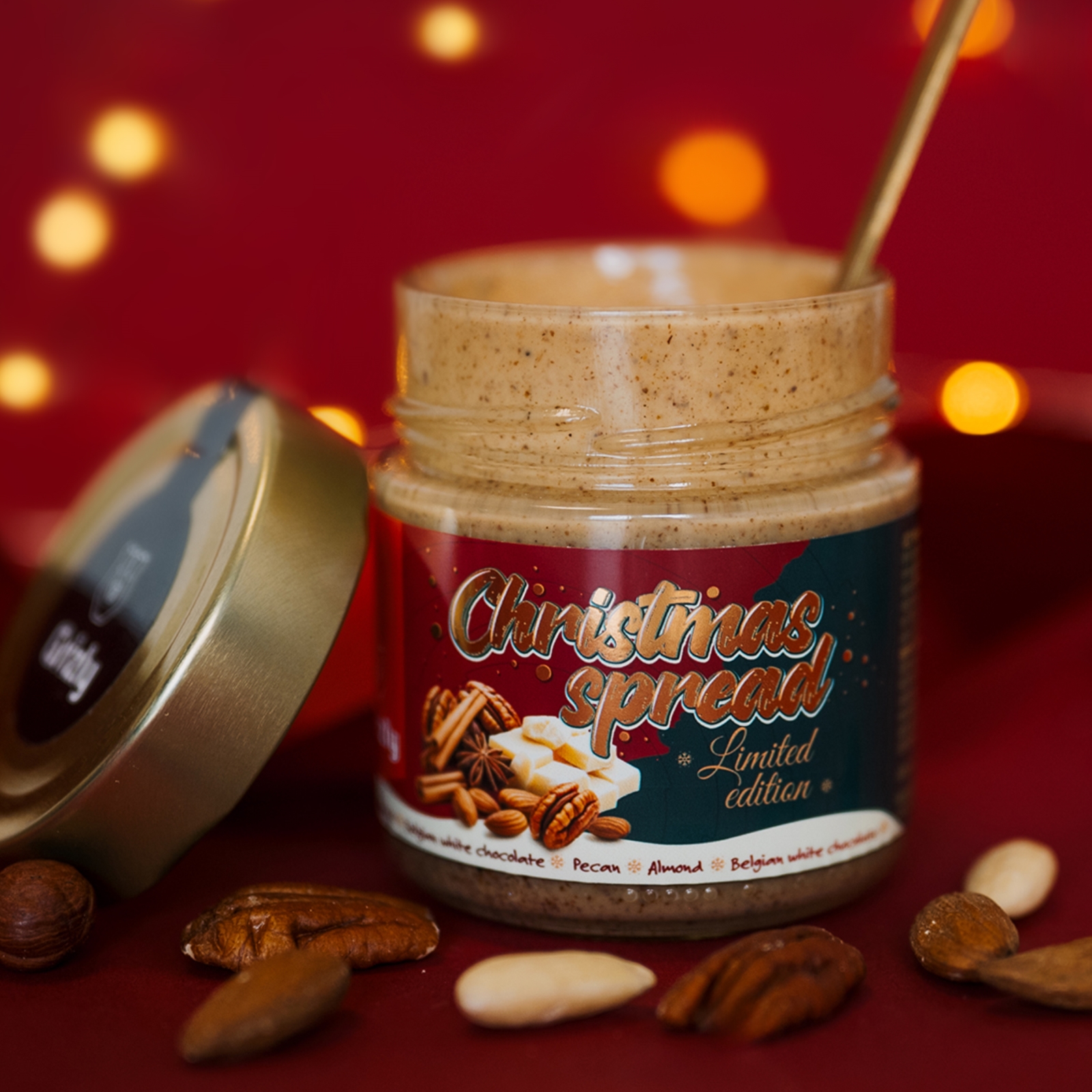 Diese weihnachtliche Limited Edition besteht nur aus trocken gerösteten Haselnüssen, gerösteten Mandeln, hervorragender belgischer Karamellschokolade und gerösteten Pekannüssen. Dazu eine Prise Lebkuchengewürz – und schon ist die fulminante Weihnachtscreme mit dem Geschmack von Weihnachten da!
