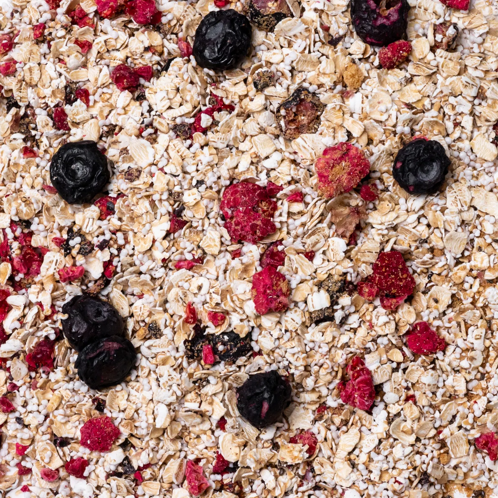 | Zutaten: | Glutenfreie Haferflocken mit Keimen 56,7 %, getrockneter Rohrzuckersaft, gepufftes Amaranth, Chiasamen, gefriergetrocknete Himbeeren 5,7 %, gefriergetrocknete Blaubeeren 3,3 % |